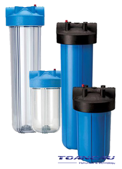 Vỏ bình nhựa loại 10 inch và 20 inch, kết nối bằng ren 21mm và 27mm, thích hợp với các loại đầu lõi Code 0, code 9, DOE, SOE, tích hợp nút xả khí